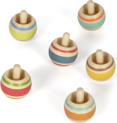 Prețul este pentru 1 buc. Sunt disponibile 6 variante de culoare. Dacă doriți o culoare anume, vă rugăm să o menționați în nota comenzii. Dacă este în stoc, vom încerca să vă satisfacem dorința. Dacă nu se specifică un motiv anume, trimitem aleatoriu. Căutați o jucărie simplă care să lumineze cu siguranță ochii copilului și să-i susțină dezvoltarea? Acest titirez vesel, dungat, îndeplinește ambele dorințe. Jucăria tradițională și îndrăgită, cu diverse dungi colorate, este realizată din lemn masiv. Copilul dumneavoastră poate dărui titirezul unui prieten sau poate organiza un concurs de învârtire. Cine îl va învârti cel mai mult? Jucăria dezvoltă, în plus, coordonarea mână-ochi, motricitatea fină și dexteritatea degetelor. Principalele caracteristici: aspect de lemn natural combinat cu culori vii dezvoltă motricitatea fină și dexteritatea degetelor antrenează coordonarea mână-ochi potrivită ca cadou