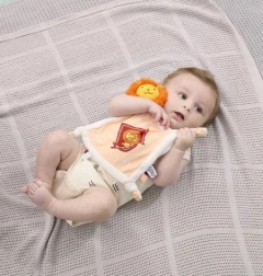 Colțurile nodate și etichetele moi încurajează explorarea tactilă și motricitatea fină. Bebeluşul se distrează și își exersează natural prinderea.