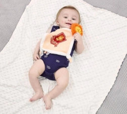 Materialul extrem de moale este blând cu pielea bebelușului și oferă confort liniștitor la somn și la mângâiere.