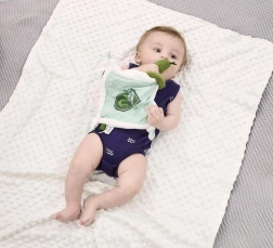 Datorită etichetelor moi, colțurilor înnodate și broderiei reliefate, jucăria susține stimularea senzorială și tactilă naturală. Ușoară și ușor de apucat, păturica ajută bebelușii să se liniștească și să capete o senzație de siguranță.