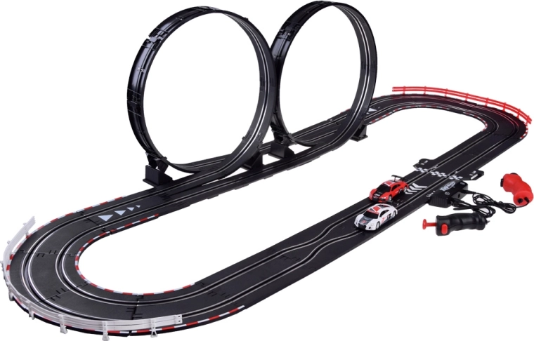 Controlul este ușor și captivant – joystick-urile cu reglare a accelerației permit accelerare lină și control în curbe. Setul include, de asemenea, parapeți, anvelope și contacte de rezervă pentru durată de viață îndelungată și funcționare fără probleme.
