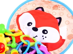 Mini covorașul foșnitor și zornăitoarele colorate dezvoltă văzul, auzul și simțul tactil și susțin coordonarea mâinilor.