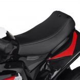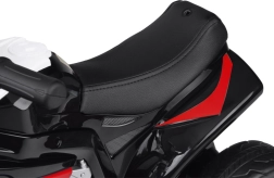 Propulsia este asigurată de un motor de 6 V cu acumulator de 6 V 4 Ah. Motocicleta pornește prin apăsarea pedalei de accelerație, iar după eliberarea acesteia se activează frâna electrică pentru o oprire sigură. Roțile din plastic sunt ușor de întreținut, iar șeaua profilată, acoperită cu piele ecologică, asigură confort chiar și la plimbări mai lungi.
