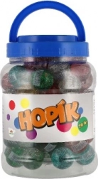 Această minge este fabricată din plastic de calitate, care îi conferă durabilitate. Cu suprafața sclipitoare în șase culori diferite, aduce plăcere vizuală la fiecare săritură.