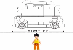Setul oferă un model detaliat al mașinii de surf cu elemente realiste cum ar fi geamuri, roți și suport de marfă pe acoperiș.