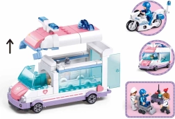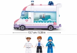 Setul de construcție conține o ambulanță detaliată cu dispozitive moderne pentru scenarii de joc autentice.