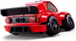 Setul include o mașină de curse detaliată, cu elemente de viteză, cum ar fi un spoiler spate și anvelope puternice.