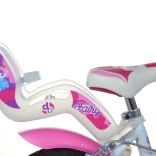 Căutați prima bicicletă pentru copilul dumneavoastră? Această bicicletă de 12" DINO BIKES, într-o elegantă culoare albă, este concepută pentru începuturi confortabile și sigure. Cadrul din oțel durabil asigură rezistență, în timp ce roțile ajutătoare facilitează menținerea echilibrului. Datorită apărătorilor de noroi, hainele rămân mai curate chiar și la mers pe trotuar umed.