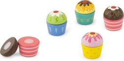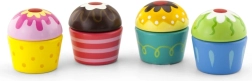Lăsați imaginația copiilor să zboare și permiteți micului cofetar să alcătuiască propriile combinații dulci. Fiecare brioșă este formată din două părți unite cu arici (Velcro) – glazura și baza pot fi schimbate cu ușurință, iar joaca se poate relua iar și iar. Ideală ca accesoriu pentru bucătăria de jucărie și pentru jocul de-a magazinul sau cafeneaua.