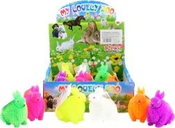Iepuraș ciufulit din gumă. În interior are o bilă luminoasă care clipește. Dimensiuni aprox. 8 x 7 x 5 cm. Vârsta 3+