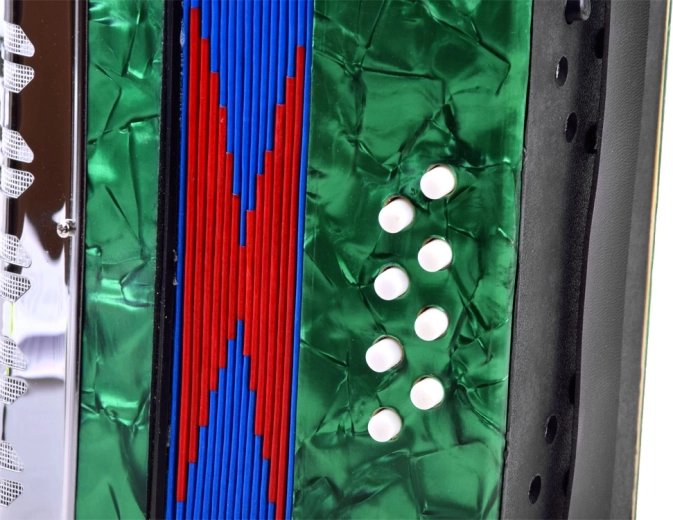 Descoperă bucuria muzicii cu acest acordeon mare pentru copii în versiune verde. Arată ca un instrument adevărat, dezvoltă motricitatea fină, simțul muzical și învățarea diferențierii tonurilor. Datorită clapelor și butoanelor de bas, curelei confortabile și clemei de siguranță a burdufului, cântatul este ușor și sigur – ideal pentru micii muzicieni începători.