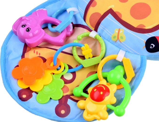 - Stimulare senzorială: mini salteluță foșnitoare și zornăitori care dezvoltă auzul și simțul tactil.
