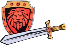 Acest set pentru copii îmbină materialul moale din spumă cu un design atractiv de echipament cavaleresc. Scutul cu cap de leu și sabia decorată în detaliu stimulează imaginația și invită la povești pline de aventură – de la turnee până la apărarea regatului.