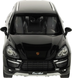 Modelul Porsche Cayenne Turbo în scară 1:14 este o miniatură precisă, cu detalii realiste precum logo-ul Porsche, farurile frontale și silueta caracteristică.