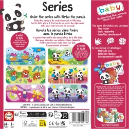Joc de potrivire distractiv și educativ pentru cei mici, de la 24 de luni, de la brandul EDUCA. Setul conține 6 puzzle-uri simple, a câte 3 piese, cu simpaticul panda Bimba și prietenii săi. Susține motricitatea fină, atenția, curiozitatea și imaginația copiilor. Piesele mari și rezistente facilitează prinderea și asamblarea, iar învățarea are loc în mod ludic.