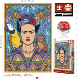 Puzzle elegant cu motivul iconic FRIDA KAHLO, o alegere ideală pentru toți iubitorii de artă și provocări. Datorită celor 1500 de piese vă veți bucura de ore îndelungate de distracție și de satisfacția unui proiect finalizat.