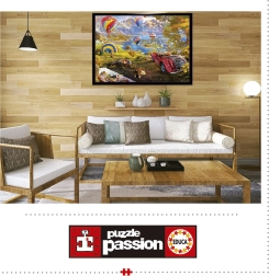 Acest puzzle de format mare oferă ore întregi de distracție concentrată pentru pasionații exigenți. Paleta bogată de culori, peisajul detaliat și elementele contrastante – de la copacii de toamnă și până la lac și baloanele de pe cer – facilitează orientarea și fac asamblarea mai cursivă și mai plăcută.