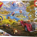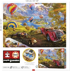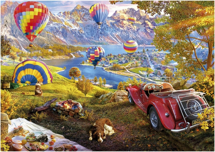 Peisajul cu lac, munți și baloane colorate, completat de un cabriolet roșu și un picnic, oferă detalii bogate care fac asamblarea mai plăcută și mai rapidă.