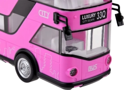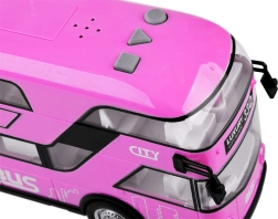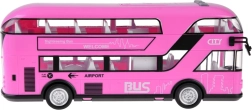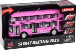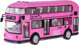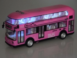 Autobuz roz cu etaj vesel va atrage cu siguranță atenția micilor șoferi și a fanilor acestor vehicule. Acest autobuz realist cu etaj a fost realizat cu mare precizie, într-o culoare plăcută, din plastic. Autobuzul asigură distracție datorită sunetelor și efectelor luminoase. Are uși care se deschid, iar prin geamurile transparente se văd scaunele și volanul, făcând joaca și mai realistă. Un avantaj al autobuzului este funcția de mers inerțial: este suficient să tragi jucăria pe o suprafață, în spate sau în față, și autobuzul pornește singur.