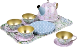 Setul este confecționat din metal și imită excelent un serviciu real de masă și cafea. Setul de ceai și cafea oferă distracție grozavă îmbinată cu învățarea.