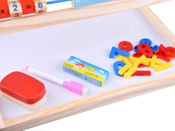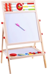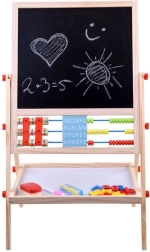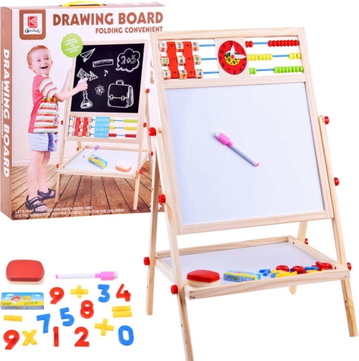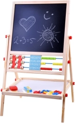 Această tablă universală le oferă copiilor o modalitate distractivă și educativă de a exersa scrierea literelor, rezolvarea unor exerciții simple și dezvoltarea abilităților artistice. O față este cu cretă pentru desen și scris cu cretă, cealaltă este magnetică pentru lucru cu magneți și marker. Datorită accesoriilor bogate, copiii își însușesc cu ușurință bazele alfabetului și ale numărării.
