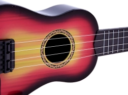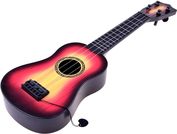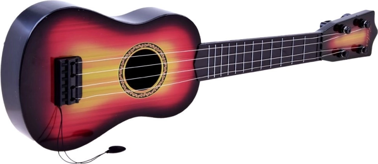Această chitară pentru copii este o alegere excelentă pentru micii pasionați de muzică care doresc să descopere lumea notelor și acordurilor. Datorită dimensiunilor compacte, este ușor de ținut de către copii, iar corpul din plastic cu imitație de lemn arată elegant și este rezistent. Patru corzi metalice și reglajul simplu pe gât ajută la obținerea unui sunet mai curat și stimulează dorința de a cânta mai departe.