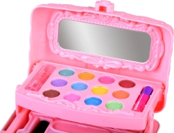 Trusa cosmetică roz, elegantă, de la Jokomisiada îi va încânta pe toți micii împătimiți ai frumuseții. Oferă machiaj sigur pentru copii, un set bogat de accesorii și un design compact, ușor de transportat pentru distracție acasă și în călătorii.