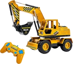 Excavator RC distractiv și rezistent, la scară 1:14, cu lamă frontală, oferă copiilor un joc realist pe șantier. Datorită telecomenzii 2,4 GHz cu rază de acțiune de până la 50 m, cupeii mobil și turelei rotative, se bucură de multă acțiune atât în interior, cât și afară. Alimentarea cu acumulator 7,4 V cu încărcare USB și execuția de calitate garantează durabilitate și distracție în siguranță.
