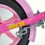 Pentru o plimbare sigură, bicicleta este echipată cu frână față acționată manual, tip saboți, apărătoare de noroi împotriva stropilor și șa confortabilă, reglabilă. Datorită dimensiunii compacte, este potrivită pentru copii de aproximativ 70 până la 90 cm. O alegere ideală pentru curte, pistă de ciclism și primele ieșiri cu familia.