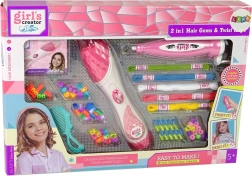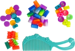Acest set complet pentru decorarea părului le permite copiilor să își exprime imaginația. Cu cele două instrumente pentru aplicarea mărgelelor și răsucirea firelor, creezi cu ușurință coafuri originale – de la codițe subtile cu fire colorate până la modele îndrăznețe cu mărgele.