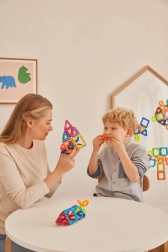 Descoperiți noi posibilități cu Magformers PLUS 14 - setul de bază care oferă oportunități extinse de construcție cu piese MINI. Aceste piese sunt concepute să exerseze abilitățile motrice fine, să stimuleze creativitatea și să învețe copiii să recunoască culorile și formele geometrice de bază.