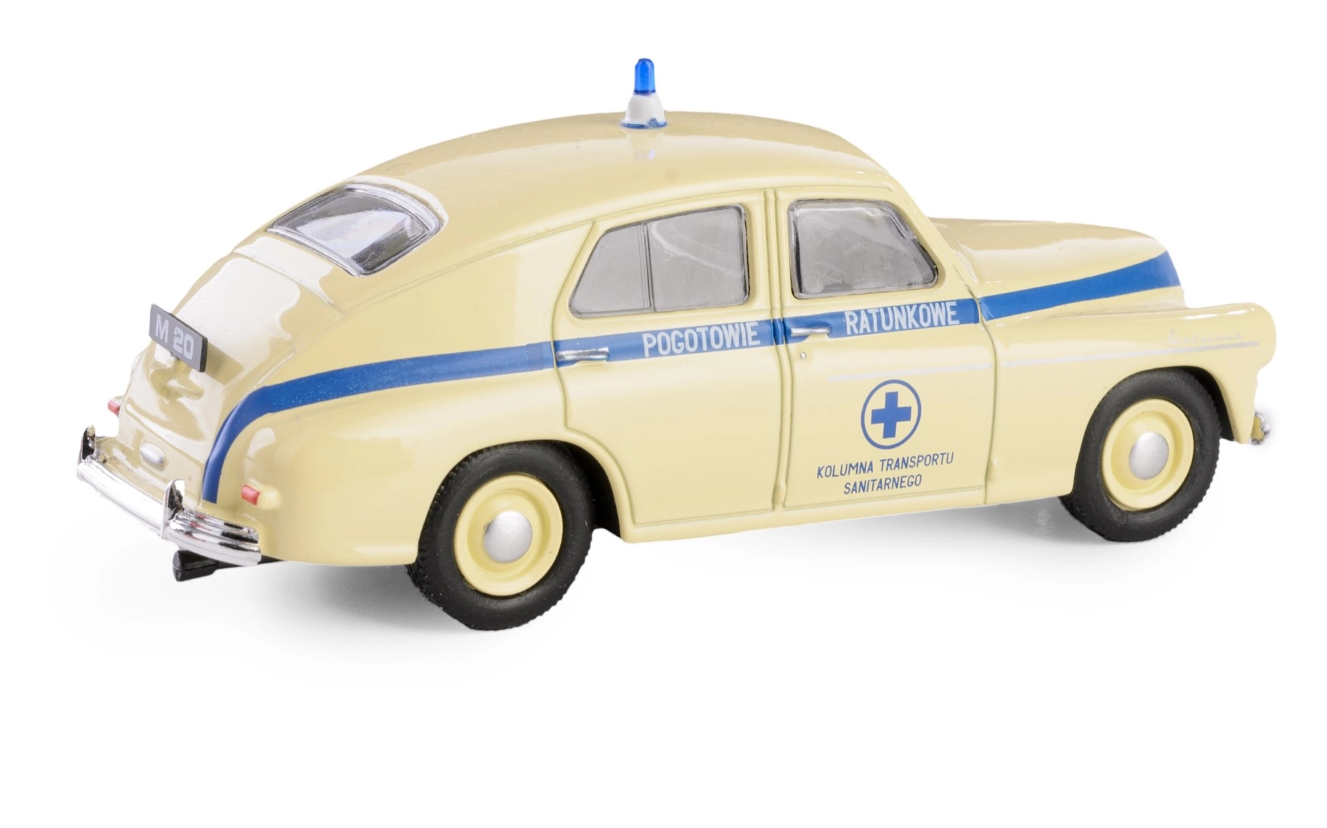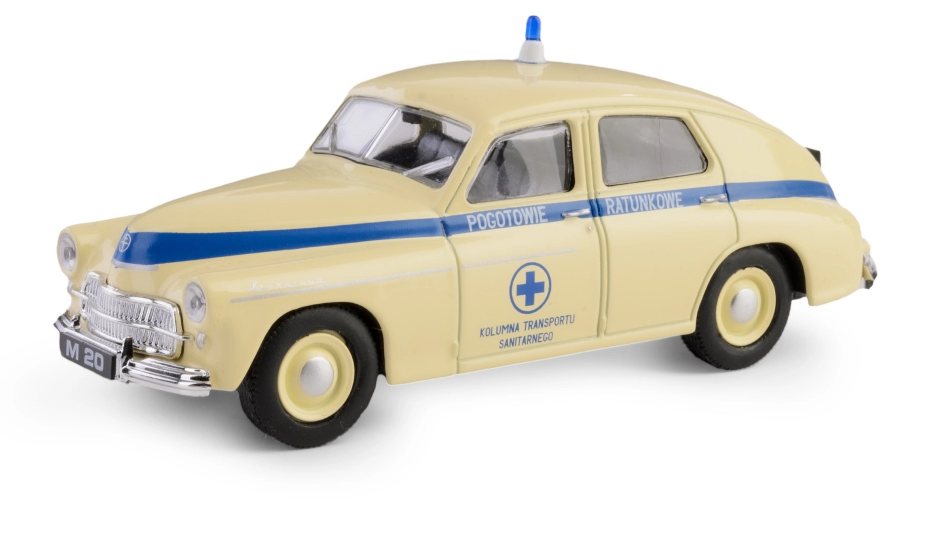 Descoperă automobilul istoric iconic din perioada PRL – versiunea ambulanță a modelului Warszawa la scara 1:43. Acest model realizat cu atenție la detalii combină o caroserie metalică solidă cu elemente din plastic precise și redă fidel caracterul mașinii legendare.