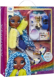 Seria Sparkle & Shine aduce un alt fel de curcubeu, care apare doar noaptea – rar, unic și strălucitor. Păpușa Marina din colecția RAINBOW HIGH impresionează prin aspectul fermecător, stilul îndrăzneț și un element inedit: picioare umplute cu sclipici, care creează un efect hipnotic la fiecare mișcare.