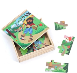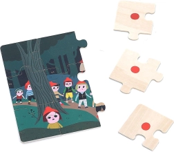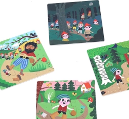 Această set conține 4 puzzle-uri cu câte 9 piese, care prezintă basmul despre Degețel. Fiecare imagine este o reprezentare frumoasă a poveștii, care stimulează imaginația copiilor și îmbunătățește concentrarea și gândirea logică.