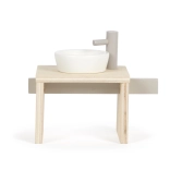 Creată din lemn, material textil, metal și plastic pentru durabilitate și estetică.