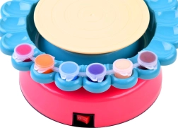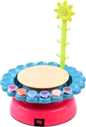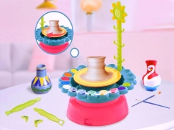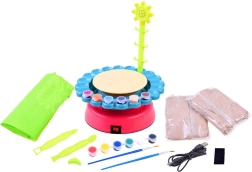 Roata de ceramică este o idee excelentă de cadou pentru copiii cărora le place să-și petreacă timpul creativ. Jucăria este ideală pentru toți cei cărora le place munca manuală și nu se tem să se murdărească puțin. Cu ajutorul acestui aparat grozav puteți crea obiecte interesante din lut (de ex. vaze, amfore, ghivece, farfurii, căni) și le puteți decora cu cuțite și spatule din plastic și culori. Șorțul de protecție este conceput pentru a preveni murdărirea excesivă a micului artist.