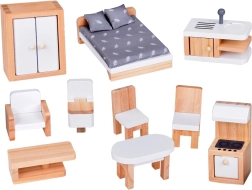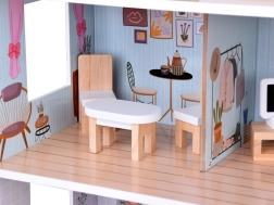 Pachetul include un set bogat de mobilier, cu ajutorul căruia poți aranja cu ușurință fiecare încăpere. Construcția din lemn rezistent, marginile netede și materialele netoxice asigură joaca în siguranță. Montajul este rapid și intuitiv – piesele sunt numerotate, iar ghidul ilustrat te conduce pas cu pas.