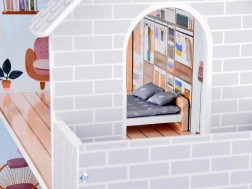 Fiecare etaj oferă o altă încăpere: bucătărie, baie, living, sufragerie și dormitor cu balcon. Tapetele și decorațiunile realiste stimulează imaginația și asigură ore îndelungate de joacă.