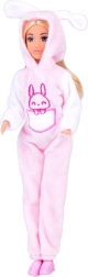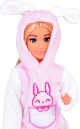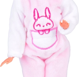 Această păpușă ANLILY stilată vine într-o salopetă pufoasă, cu glugă și urechiușe de iepuraș, decorată cu un motiv drăgălaș de iepuraș. Ținuta în combinație roz-alb este ideală pentru petreceri în pijama, pentru rutina de seară și pentru joaca creativă din timpul zilei.
