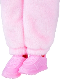 Membrele mobile permit așezarea păpușii în diferite poziții, iar tenișii roz se pot descălța și încălța cu ușurință.