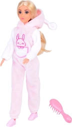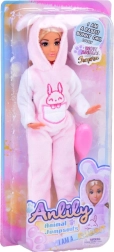Păpușa ANLILY drăgălașă, în pijama roz-alb de iepuraș, îi va încânta pe micii iubitori ai jocurilor de rol. Are păr blond lung pentru coafat, articulații mobile, iar în set se găsește o perie roz și teniși detașabili.