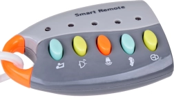 Butoanele colorate redau melodii vesele și sunete de mașină – clopoțel, claxon, pornirea motorului și blocare/deblocare. Copiii învață relația cauză–efect într-un mod distractiv.