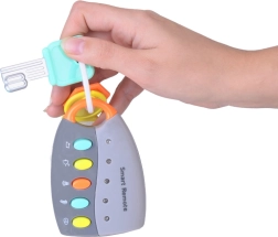 Copiii adoră să îi imite pe adulți – iar cu aceste chei interactive se vor bucura de multă distracție sigură și stimulativă. Telecomanda cu butoane colorate redă melodii vesele și sunete autentice de mașină, completate de luminițe intermitente. Jucăria este ușoară, plăcută la atingere și ușor de curățat.