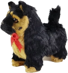 Drăgălașul ciobănesc interactiv va bucura orice copil. La atingere se activează, latră, mișcă din cap și din coadă, iar la apăsarea pe lateral merge înainte pe o melodie veselă. Blănița moale, de pluș în combinație negru‑maro și fundă roșie oferă un aspect realist. O modalitate grozavă de a învăța îngrijirea și responsabilitatea prin joc.