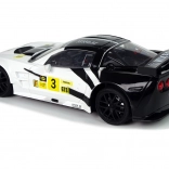 Această mașină de curse realizată cu atenție la detalii, la scara 1:18, încântă prin proporțiile fidele, stickerele sport și luminile funcționale. Datorită frecvenței de 2.4 GHz te bucuri de o conexiune stabilă chiar și când rulezi mai multe modele simultan. Schema alb-negru cu accente galbene subliniază aspectul agresiv al vehiculului.