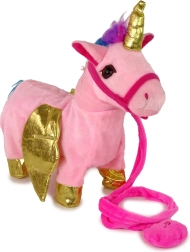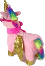 Unicornul roz cu coama colorată și aripi aurii va încânta fiecare copil.