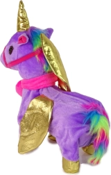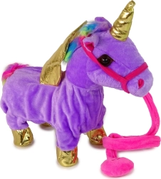 Dorești ca copilul tău să înțeleagă ce înseamnă să aibă grijă de un animal de companie? Acest unicorn de pluș este alegerea perfectă! Este fabricat cu mare atenție, violet, moale și frumos decorat cu aripi aurii. Conține funcții interactive, permițând să necheze și să cânte muzică în stil country.
