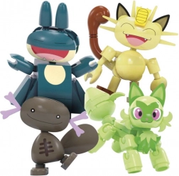 - Include 4 Pokemon de asamblat: personaje Sprigatito, Meowth, Wooper și Munchlax.