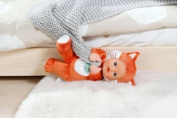 Vulpița BABY born pentru bebeluși este concepută să fie blândă cu pielea sensibilă a copiilor și, în același timp, să stimuleze primele jocuri. Datorită buzunărașelor pentru degete se transformă rapid într-o marionetă amuzantă cu codiță de vulpe, care dezvoltă motricitatea, imaginația și atașamentul față de jucării.