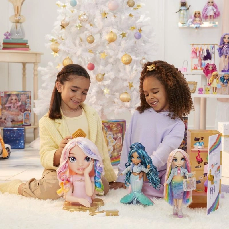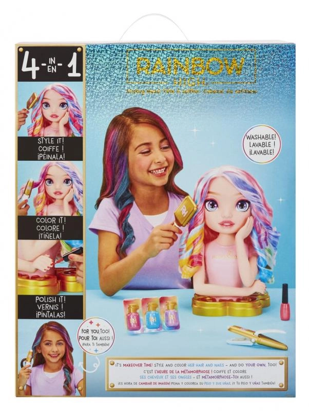 Un nou cap de coafat în stilul celei mai îndrăgite păpuși Rainbow High, Bella. Poți crea șuvițe, colora părul sau lăcui unghiile.